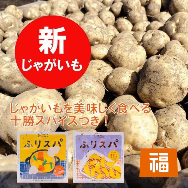 今回は秋の福袋限定で、じゃがいもをもっと美味しく楽しめるスパイスをセットにしました。同じ上士幌町のクラフトキッチンさんが手作りで調合したスパイスから、じゃがいもにピッタリの2種をセレクト。