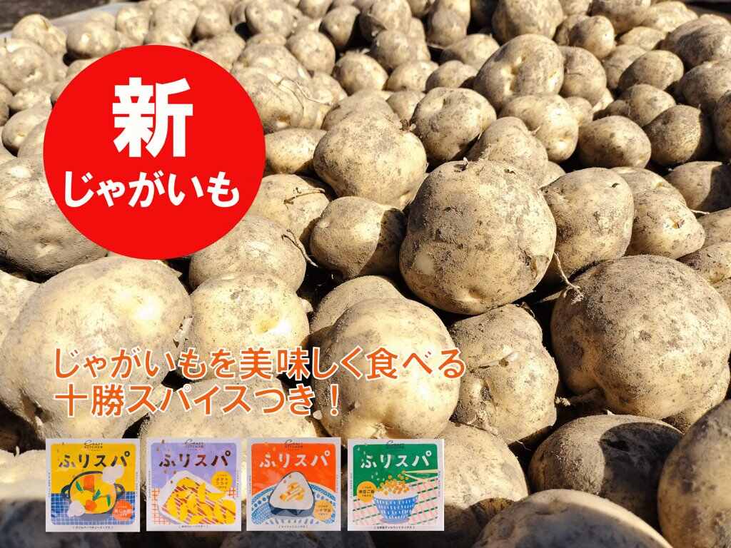 今回は秋の福袋限定で、じゃがいもをもっと美味しく楽しめるスパイスをセットにしました。同じ上士幌町のクラフトキッチンさんが手作りで調合したスパイスから、じゃがいもにピッタリの4種をセレクト。じゃがいもの品種は黄色くて濃厚な味のホッカイコガネです。スパイスをつけてもじゃがいもの味をしっかり感じてもらえる濃い味です!